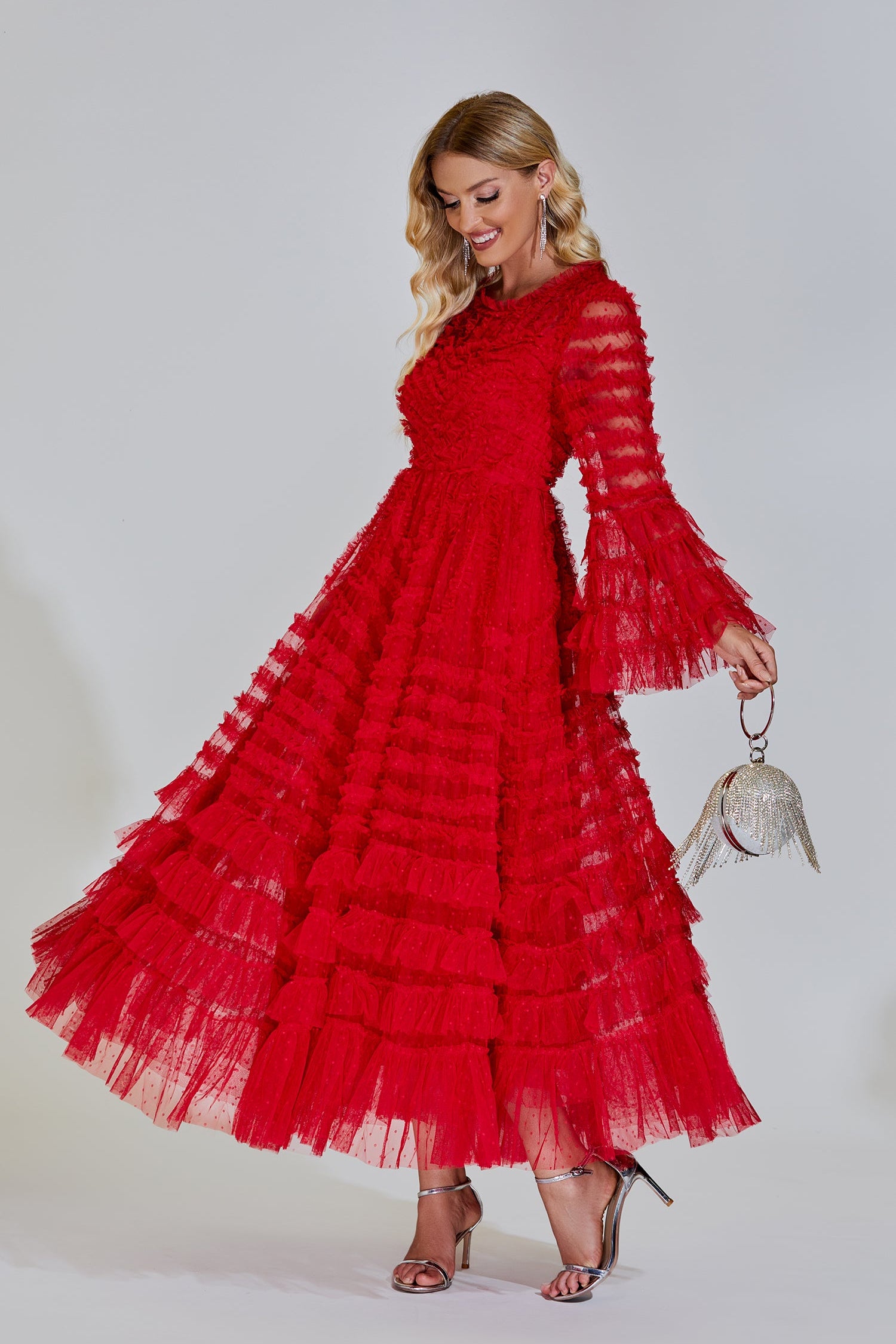 Şeffaf Korse Gövdeli ve Yapılandırılmış Omuzlu Maxi Elbise – Siyah