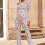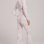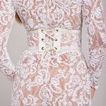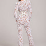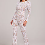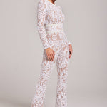 Bella Beyaz Tulumumuz, zarif dantel ve parıldayan simlerle harmanlanmış, gerçekten romantik bir görünüm sunuyor. Ten rengi astar, örtücülük sağlarken, ayrıntılı dantel süslemelerini vurgular. Çıkarılabilir korse kemeri, bel çizgisini şekillendirerek çekici, heykelsi bir siluet oluşturur ve gizli fermuar temiz bir bitiş sağlar. Bu beyaz dantel tulum, modern gelinler ya da kuralları yıkmaya ve şıklıkla geçiş yapmaya hazır olan gelin partileri için tasarlanmıştır.
