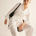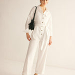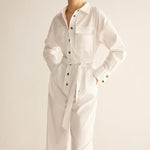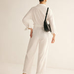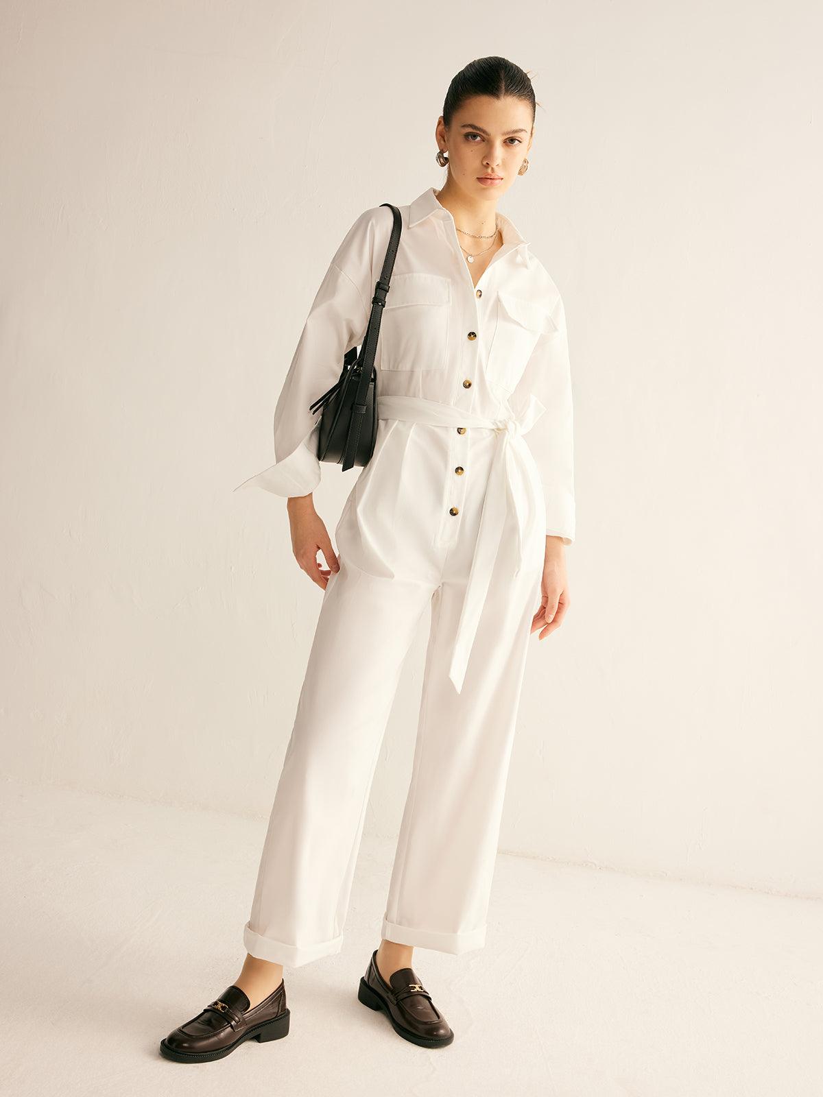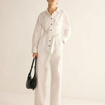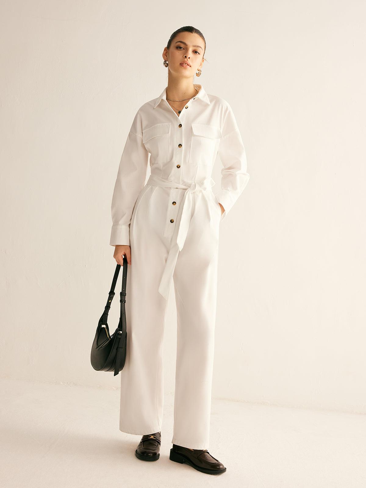 Hafif kumaşı ve zarif tasarımıyla göz alıcı bir stil sunan bu beyaz tulum, her ortamda şıklığı garantiler. Minimal detaylarıyla hem rahat hem de sofistike bir görünüm yaratır. Yaz gardırobunuzun vazgeçilmez parçası!