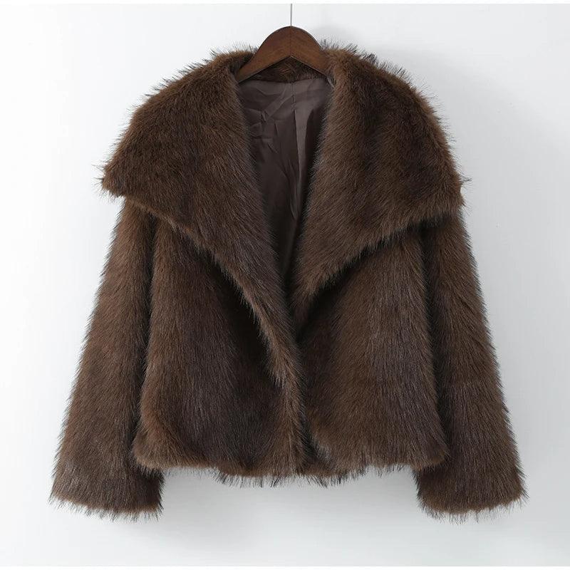 Vintage Kahve Kuzu Yünü Yaka Ceket