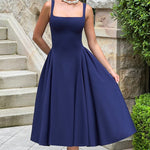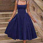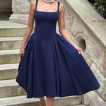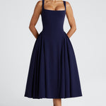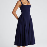 Betty Midi Elbise, zamansız zarafetiyle gardırobunuzun en özel parçalarından biri olmaya aday. Yüksek kaliteli esnek krep kumaşı, vücudu mükemmel şekilde sararak hareket özgürlüğü sunar. Kare yakası ve yelpaze şeklindeki askıları, üst bedeni zarifçe çerçevelerken, godet panelli geniş eteği akıcı ve hacimli bir siluet yaratır. Günlük şıklıkta ya da özel davetlerde rahatlıkla tercih edebilirsiniz.