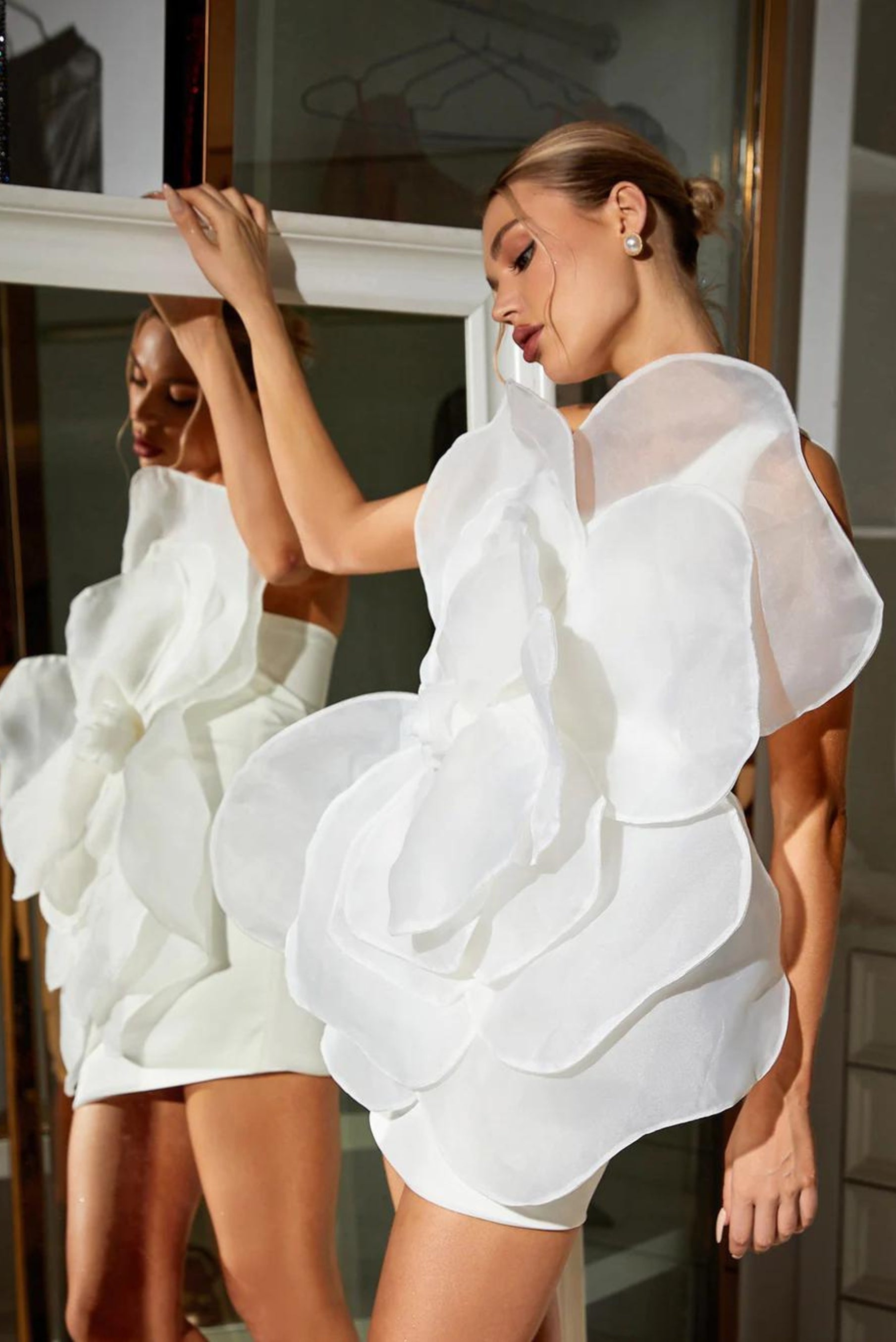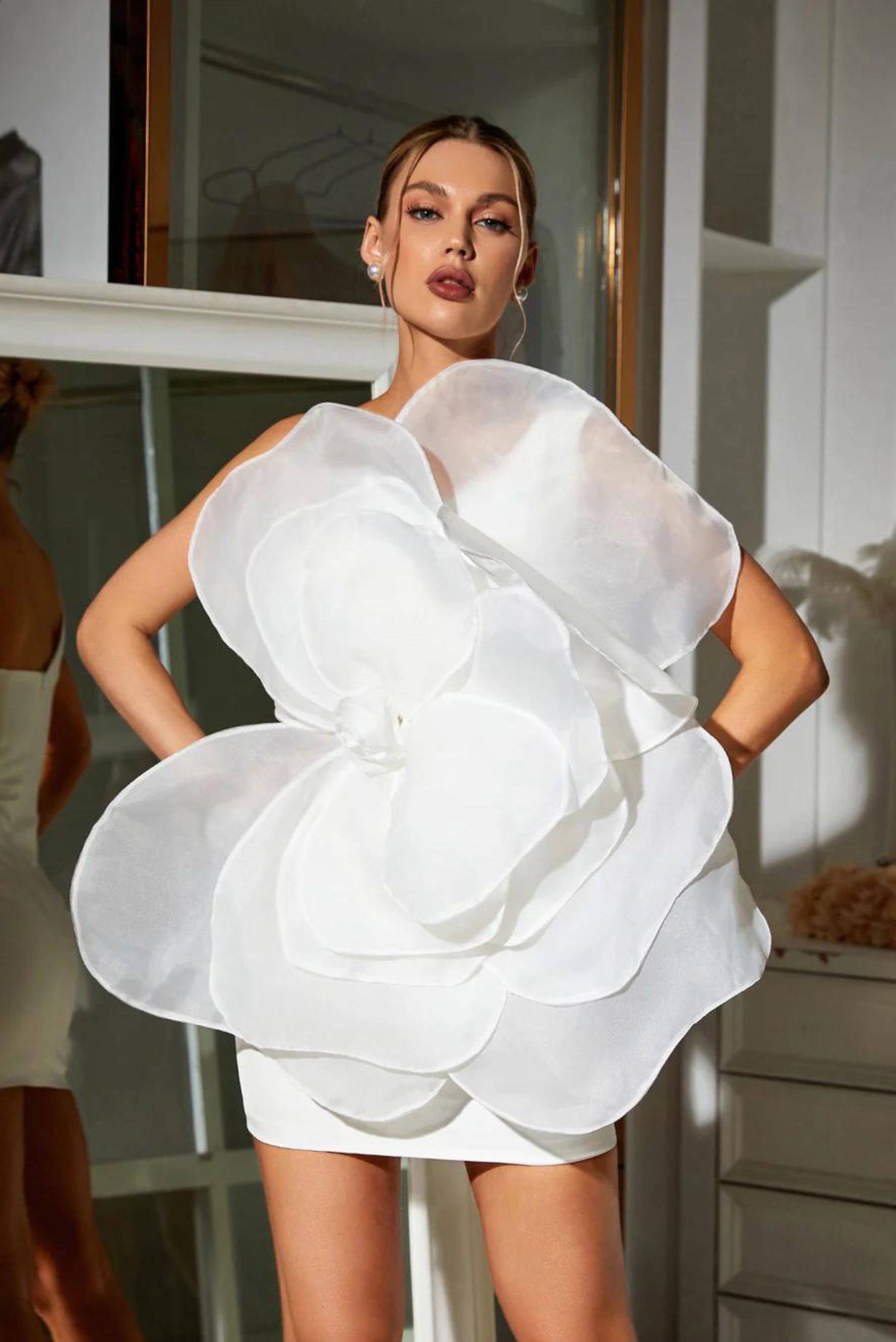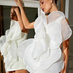 Cara - Beyaz Çiçek Mini Elbise