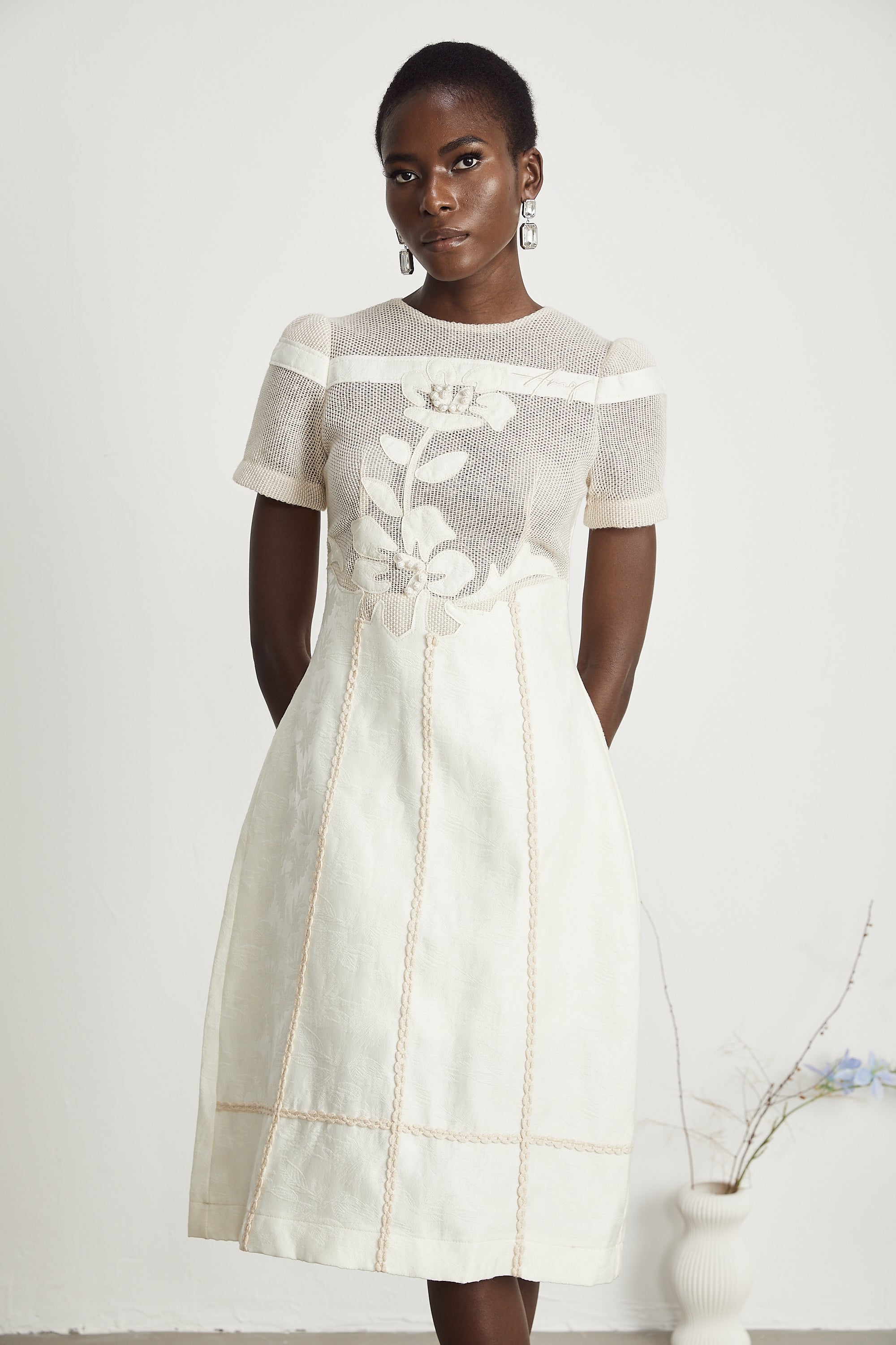 Diane Çiçek İşlemeli Ajur Midi Elbise