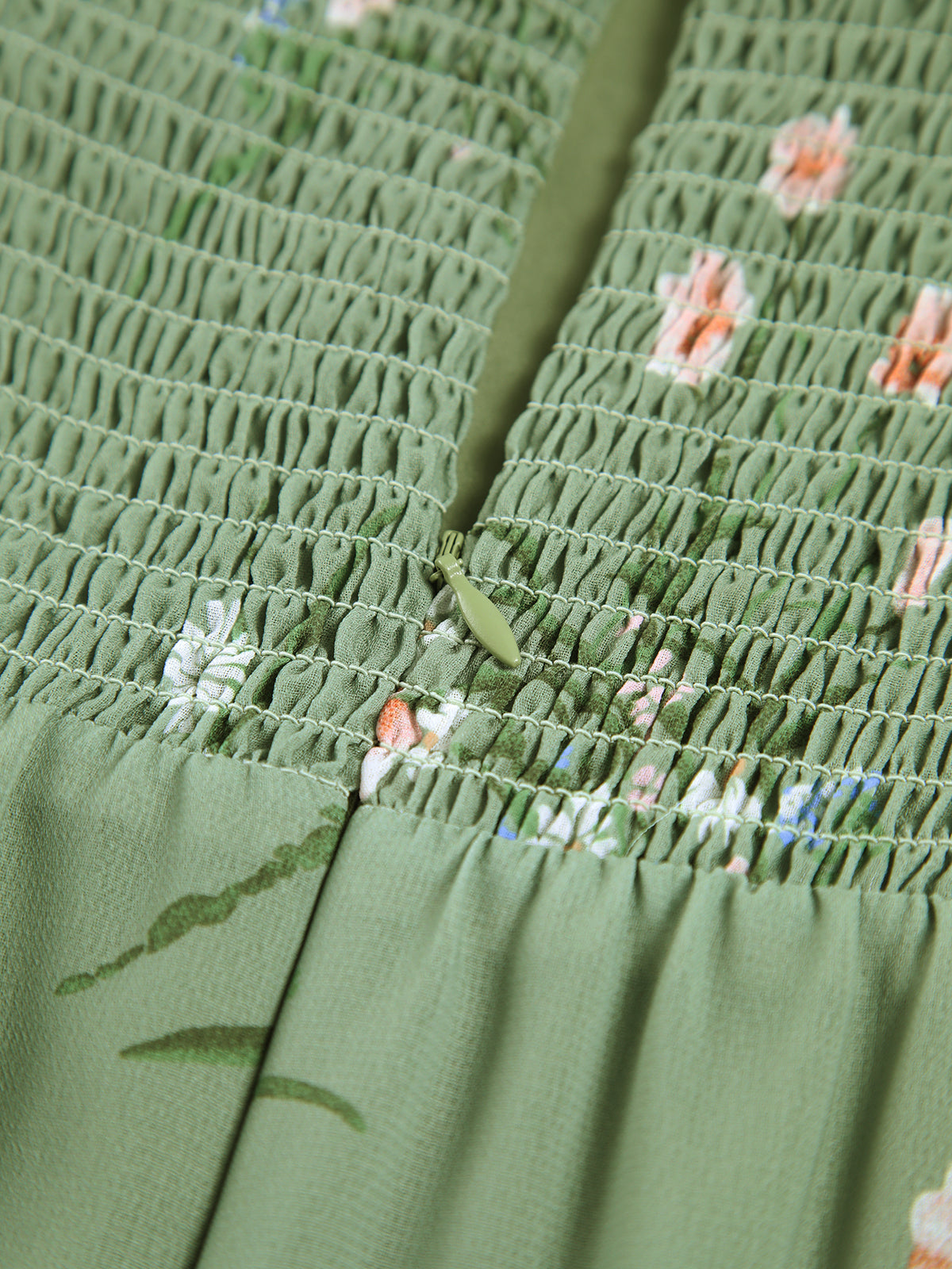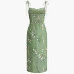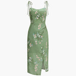 Çiçekli Boyundan Bağlamalı Şifon Midi Elbise