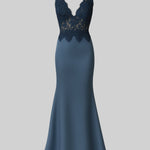 Gömme Silüetli, Dantel Detaylı ve Saten Etekli Zarif Kolsuz Gece Elbisesi