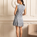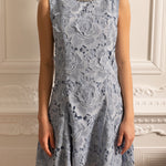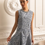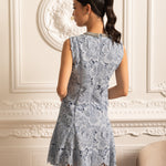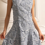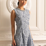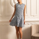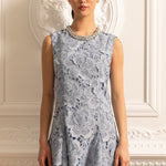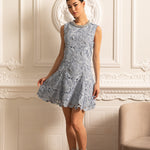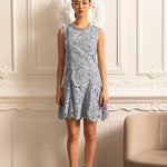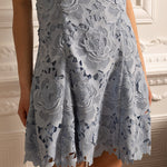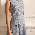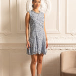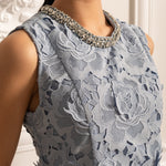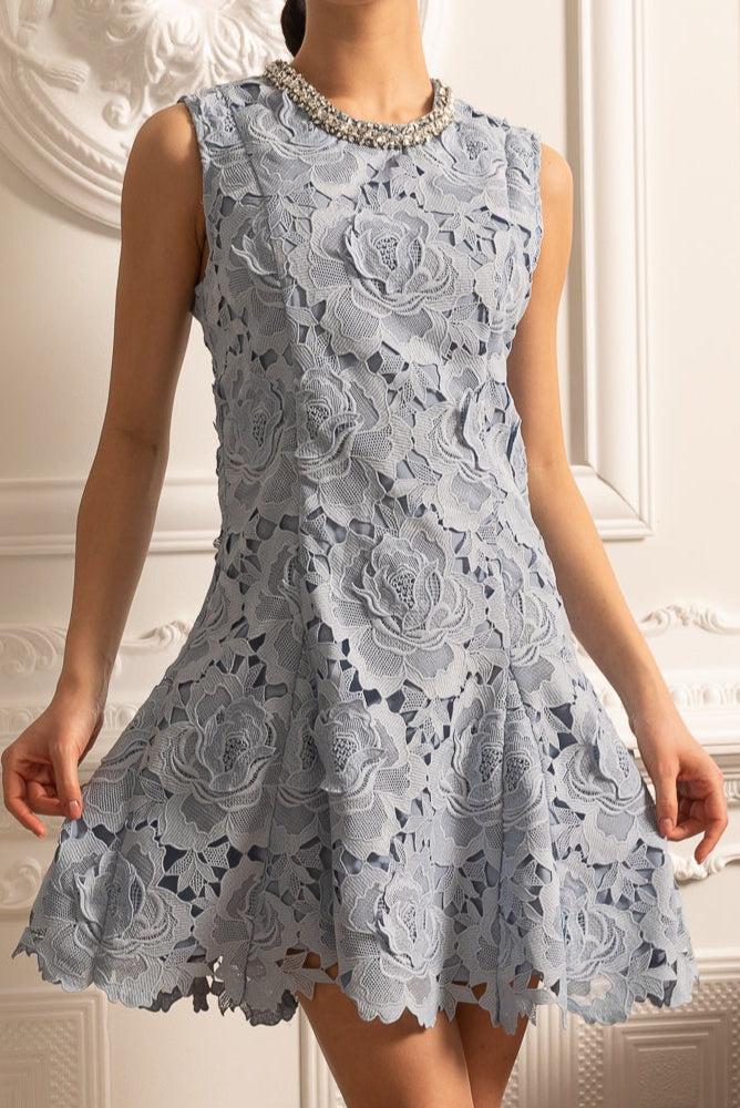 Ürün Başlığı: Mavi Çiçek Desenli Dantel Mini Elbise - Işıltılı Yaka Detaylı