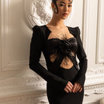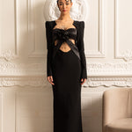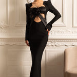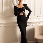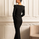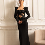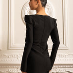 Omuzları Yapılandırılmış ve Önü Kesimli Uzun Kollu Zarif Elbise
