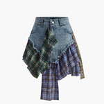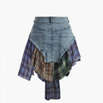 Panelli Asimetrik Etekli Denim Kısa Etek
