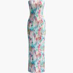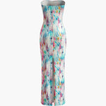 Romantik Baskılı Yırtmaçlı Tüp Elbise