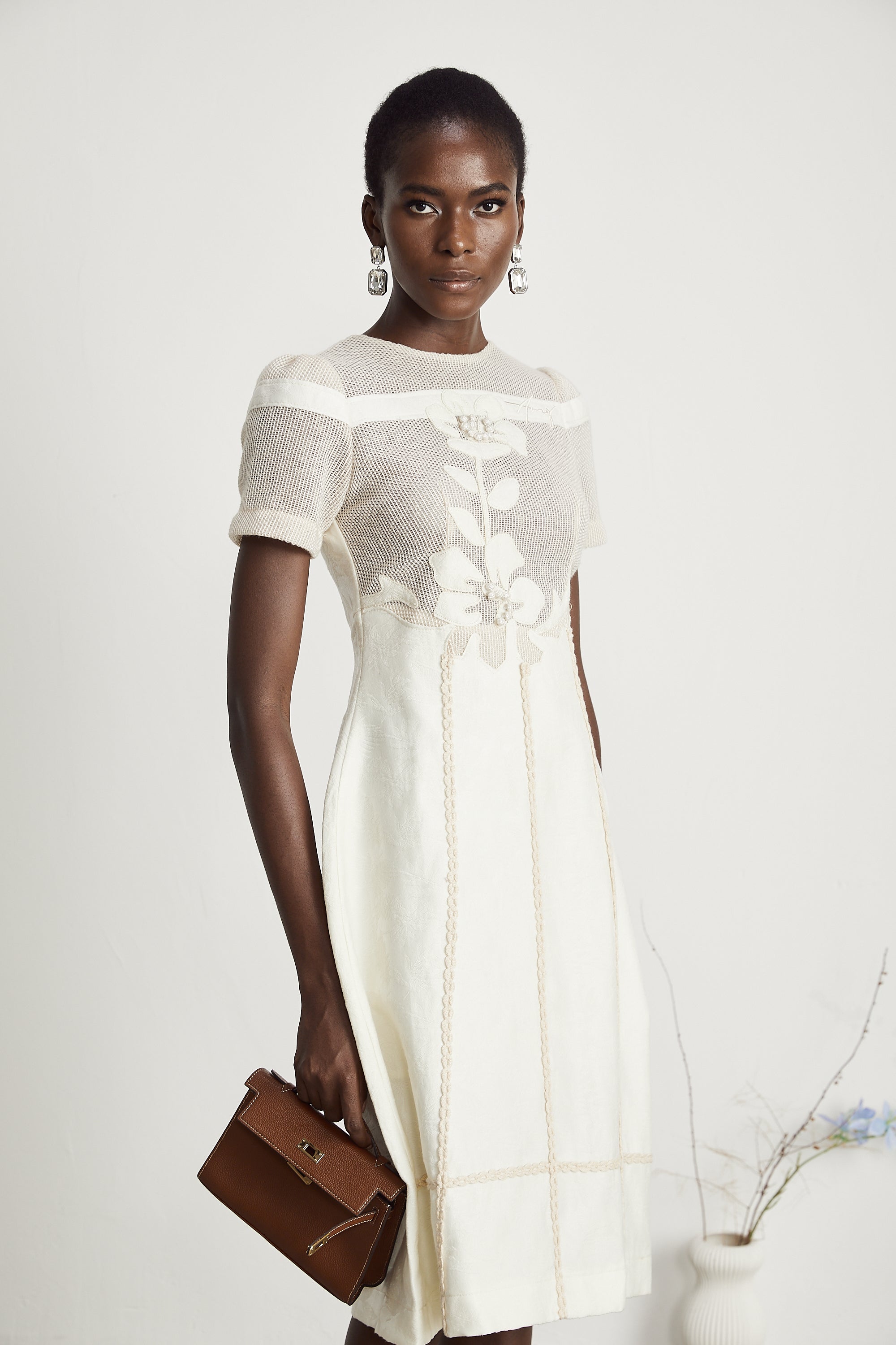 Diane Çiçek İşlemeli Ajur Midi Elbise