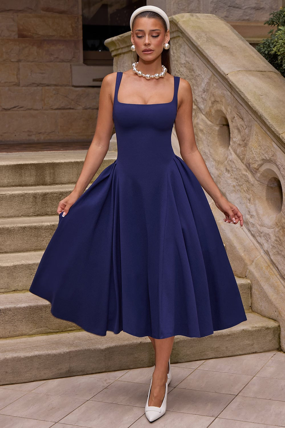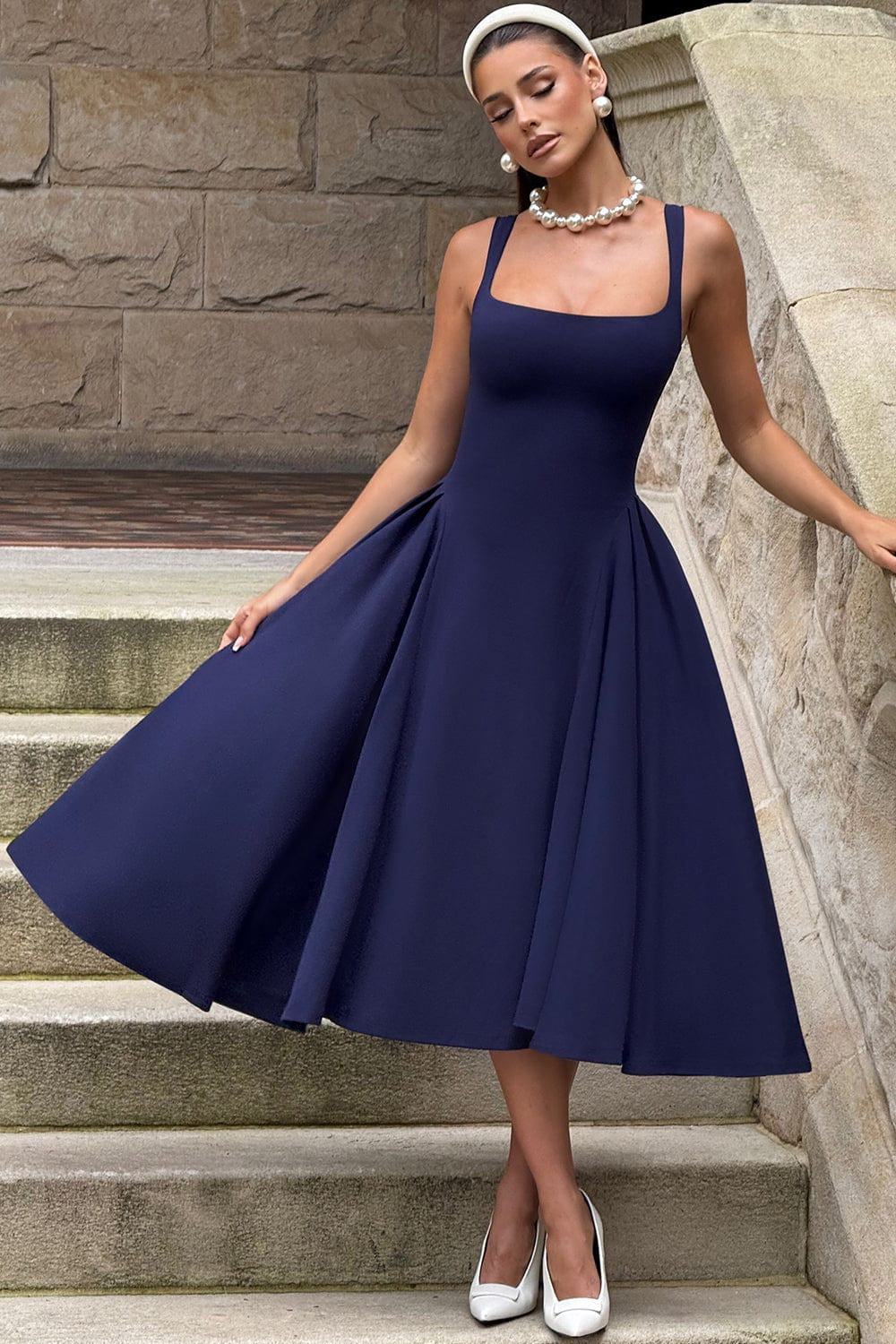 Betty - Lacivert Midi Elbise