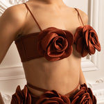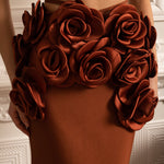 Kumaş Türü: Kahverengi saten kumaş, 3D çiçek motifleriyle süslenmiş büstiyer tasarımı