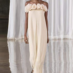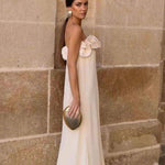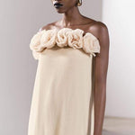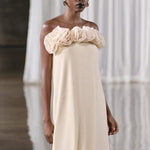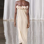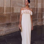 Alva Çiçekli Örme Straplez Uzun Elbise
