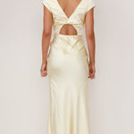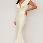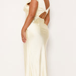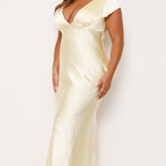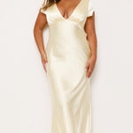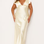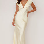 Sarı renkli Amelia Maxi Elbise ile zamansız zarafeti keşfedin. V yakalı ve büzgülü göğüs detayı, bu lüks, uzun elbiseye sofistike bir hava katıyor. Açık sırt ve bükümlü detayıyla bu zarif stil, her türlü resmi etkinlik için mükemmeldir.
