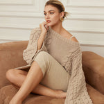 Detaylar: Yuvarlak yaka ve geniş manşetli (flare sleeve) tasarımı ile sade ama şık bir görünüm sunar. Uzun kollu yapısı, serin günlerde konforlu bir kullanım sağlar. Düz renk tasarımı sayesinde çok yönlüdür ve farklı alt parçalarla kolayca kombinlenebilir.