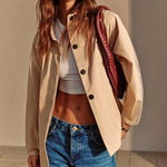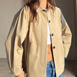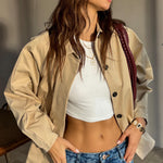 Beige Elegance Crop Ceket, modern tasarımı ve zarif detaylarıyla günlük tarzınıza sofistike bir dokunuş katıyor. Hafif ve nefes alabilir kumaşıyla konforlu bir kullanım sunarken, crop kesimi sayesinde dinamik bir görünüm elde etmenizi sağlar. Geniş yakası ve düğme detaylarıyla sade ama çarpıcı bir duruş sergileyen bu ceket, şıklığı ve rahatlığı bir araya getiriyor.