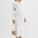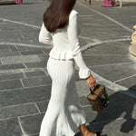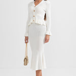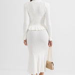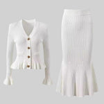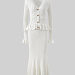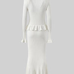 Beyaz Fırfırlı Ceket & Volanlı Etek Triko Takım