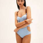 Boncuklu Kesikli Balenli Tek Parça Mayo