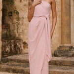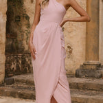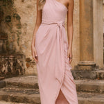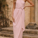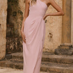 Clara Tek Omuzlu Maxi Elbise - Tozlu Pembe