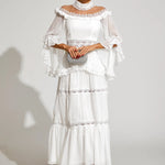 Dantel Uzun Kollu Maxi Elbise, zarafet ve sofistike bir şıklıkla tasarlanmıştır. Volanlı kolları, omuz açık yakası ve gotik esintili dantel dokusu ile zamansız bir çekicilik sunar. Hem özel davetlerde hem de günlük şıklıkta tercih edebileceğiniz bu elbise, rahatlığı ve güzelliği kusursuzca bir araya getirir. Gardırobunuza asil bir dokunuş katmak için mükemmel bir seçimdir.