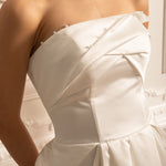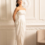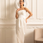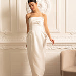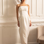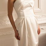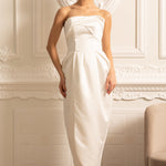Ürün Başlığı: Beyaz Straplez Midi Elbise - Büzgülü Göğüs Detaylı