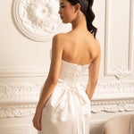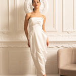 Bu zarif beyaz straplez midi elbise, korseli üst yapısı ve büzgülü göğüs detayıyla feminen bir şıklık sunar. Vücudu saran dar kesimi sayesinde asil bir silüet yaratır. Uzun etek boyu, modern ve sofistike bir hava kazandırır. Hem özel davetlerde hem de şık etkinliklerde zarif stilinizi ortaya koymak için mükemmel bir tercih!