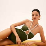 Deniz Çayırı Kontrast Bağlamalı Tek Parça Mayo