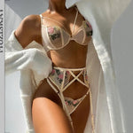 Çiçek Nakış Balensiz Sütyen Jartiyer Takımı