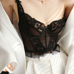 Bu şık ve zarif kolsuz üst, özel günlerinizde dikkatleri üzerinize çekmek için tasarlandı. Şeffaf yapısı ve dar kalıbıyla vücut hatlarınızı zarif bir şekilde vurgular. Hem düğün hem de parti gibi özel etkinliklerde rahatlıkla giyebilirsiniz. Şıklığınızı tamamlayacak bu parçayı gardırobunuza eklemeyi unutmayın!