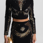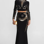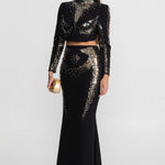 Siyah Gümüş ve Altın Payet İşlemeli Co-Ord Takım