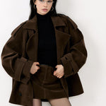 Velvet Mocha Oversize Coat’u siyah mini etek ve boğazlı bir kazak ile kombinleyerek sofistike bir görünüm oluşturabilirsiniz. Daha günlük bir tarz için düz kesim kot pantolon ve sneaker’larla tamamlayabilirsiniz. Altın aksesuarlar ve sade bir çanta ile şıklığınızı ön plana çıkarabilirsiniz.