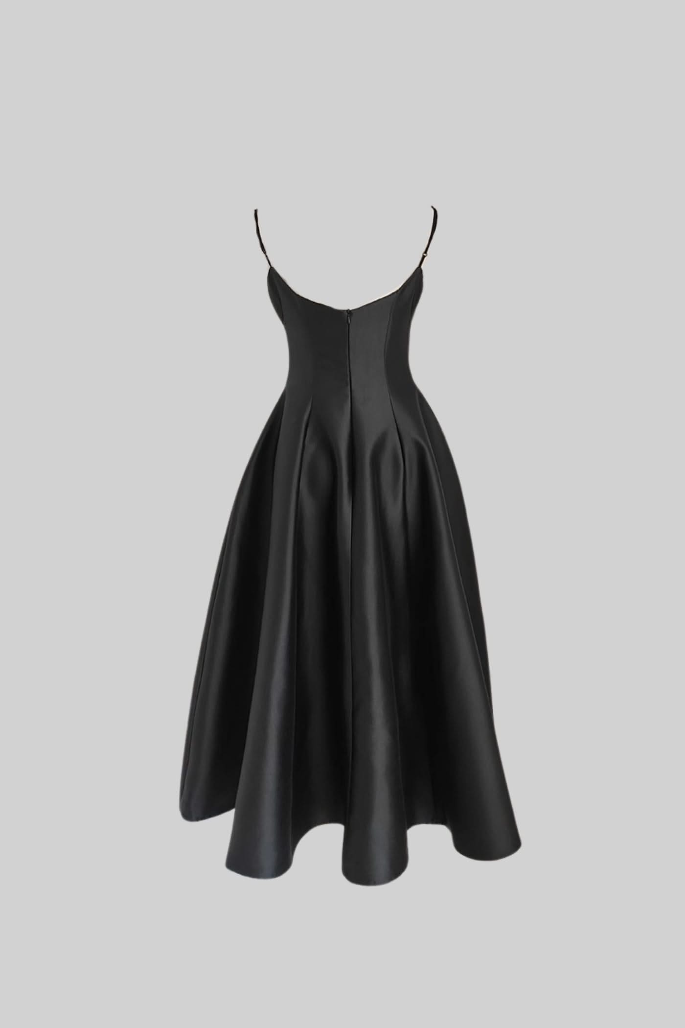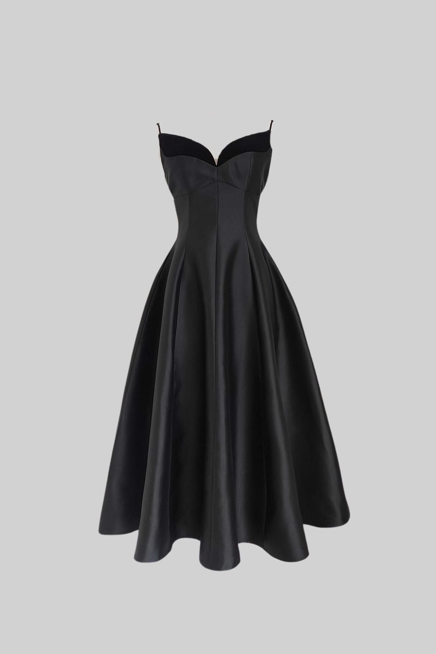 Bu zarif elbise, sade ama etkileyici tasarımıyla hem özel davetlerde hem de akşam etkinliklerinde sofistike bir görünüm sunar. 🖤
