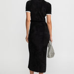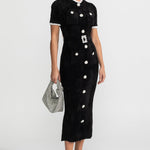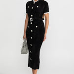 Kristal Düğmeli ve Dantel Detaylı Şık Midi Elbise – Siyah