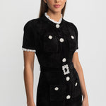 • Önde kristal taş işlemeli düğmelerle kapama
