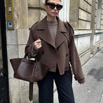 Bu şık kırpılmış kruvaze ceket ile dış giyim koleksiyonunuzu geliştirin. Zengin çikolata tonunda özel tasarımıyla sıcaklık ve stili zahmetsizce harmanlayarak her gardırop için çok yönlü bir parça haline getiriyor. En sevdiğiniz kıyafetlerin üzerine giymek için mükemmel!