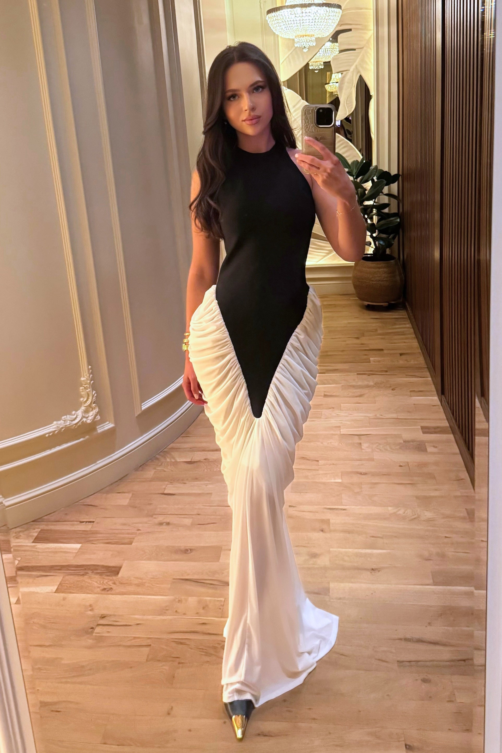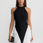 Esnek kumaştan tam boy tasarım, pürüzsüz ve feminen bir görünüm sağlar